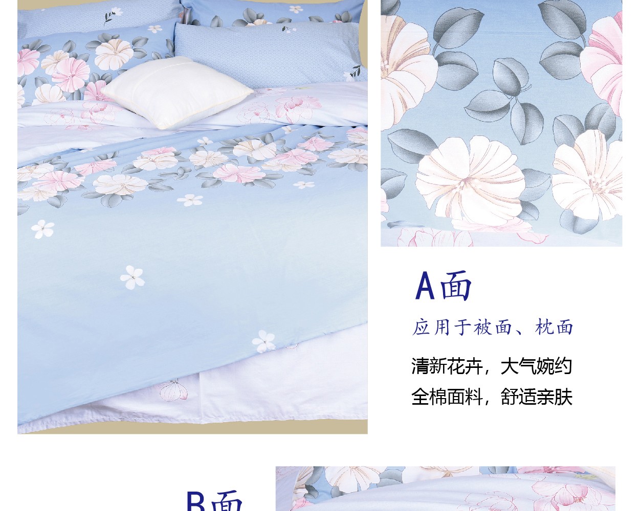 描述:優(yōu)質(zhì)環(huán)保印染工藝,無任何甲醛、增白劑、安全環(huán)保健康 全棉面料,吸濕透氣,滑爽親膚,帶給您舒適的睡眠體驗 織造面料的每-根纖維選取長度均大于30mm,精梳去除粗纖維,無任何斷線起球。