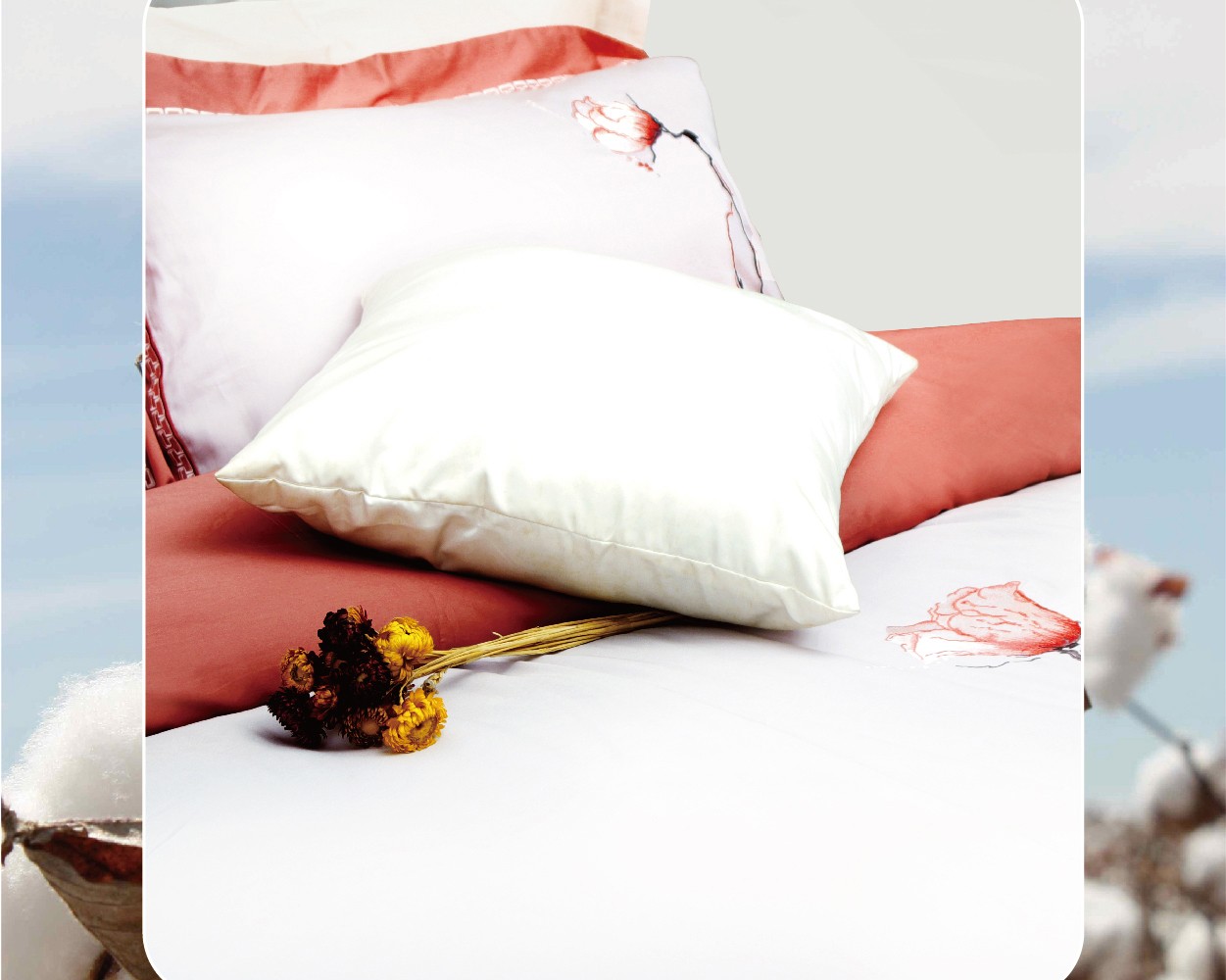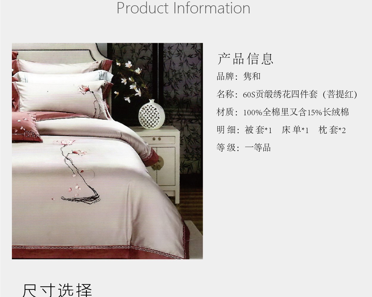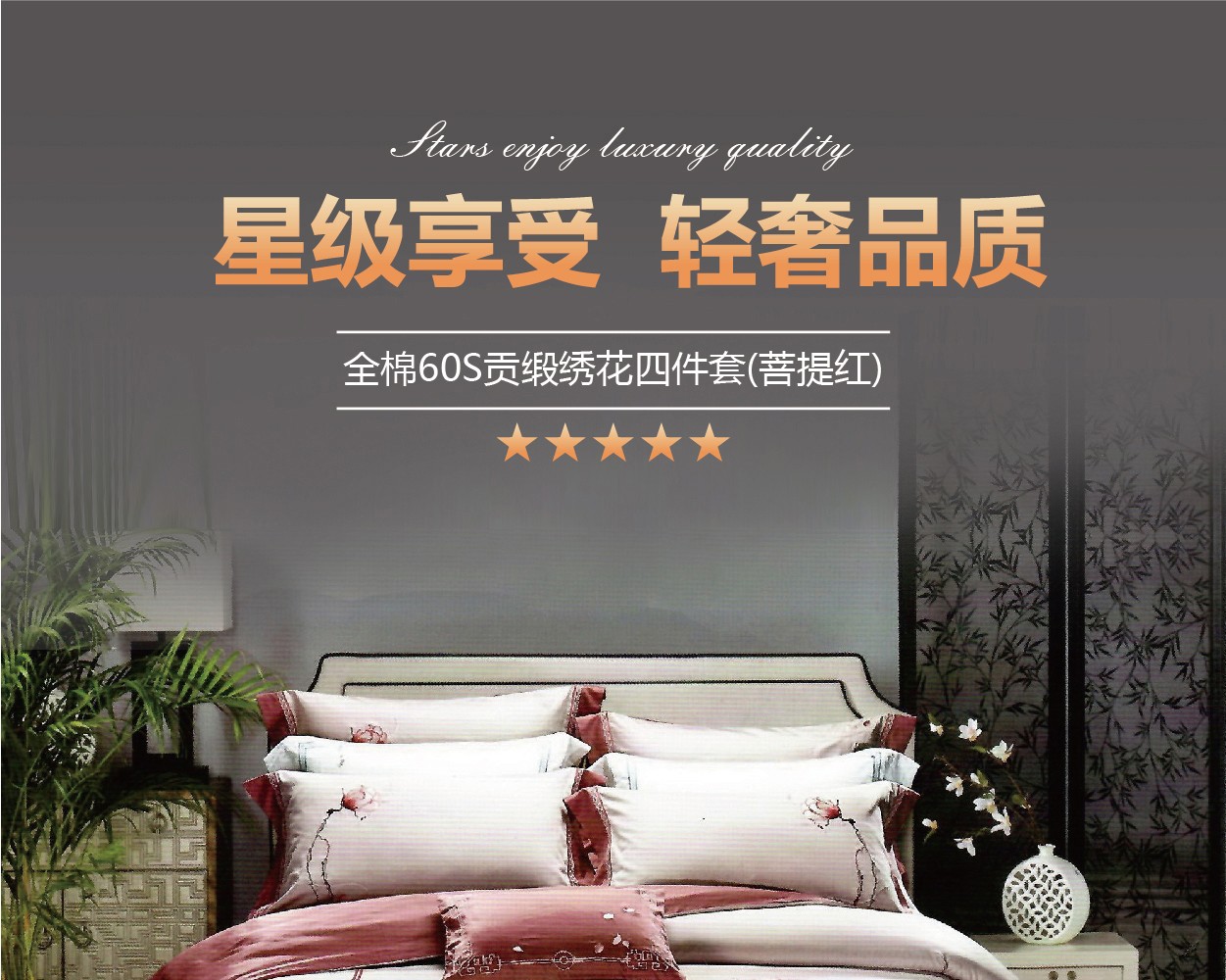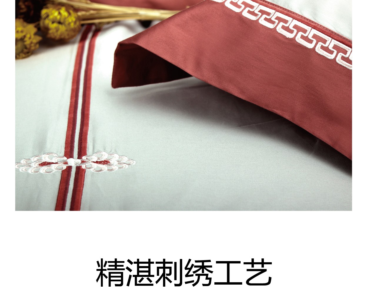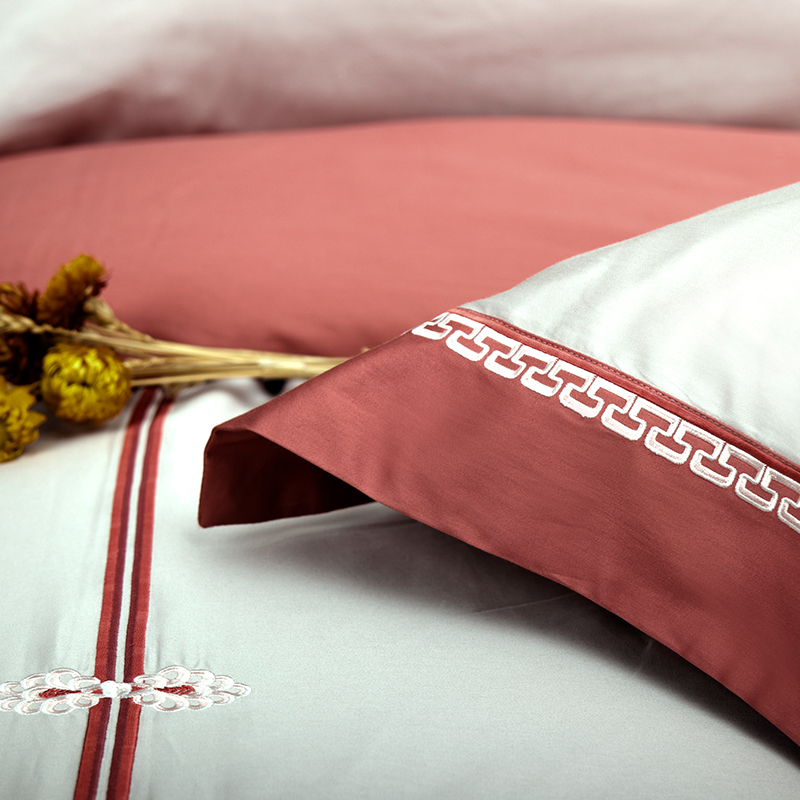 bbin宝盈60貢緞繡花四件套(菩提紅)