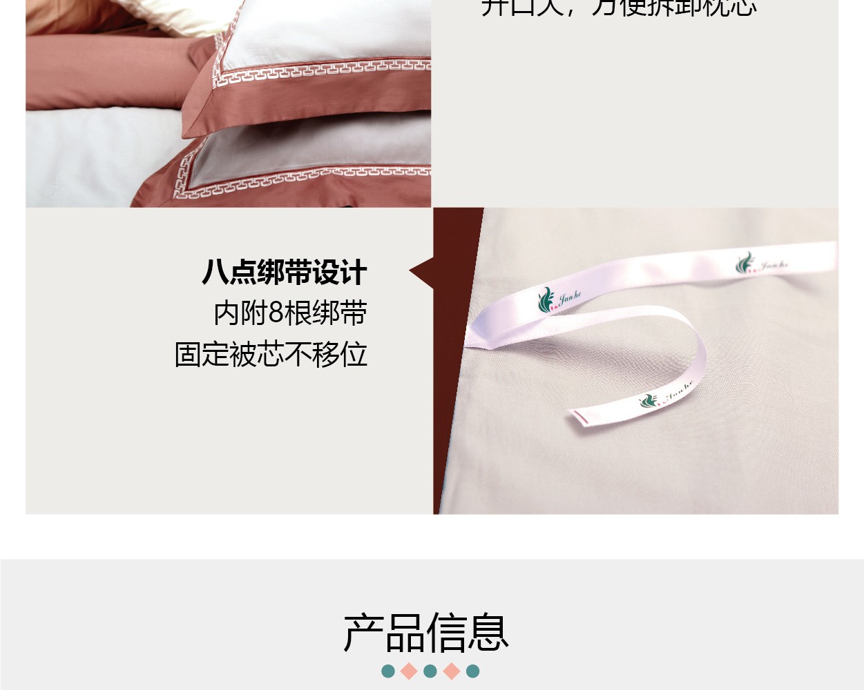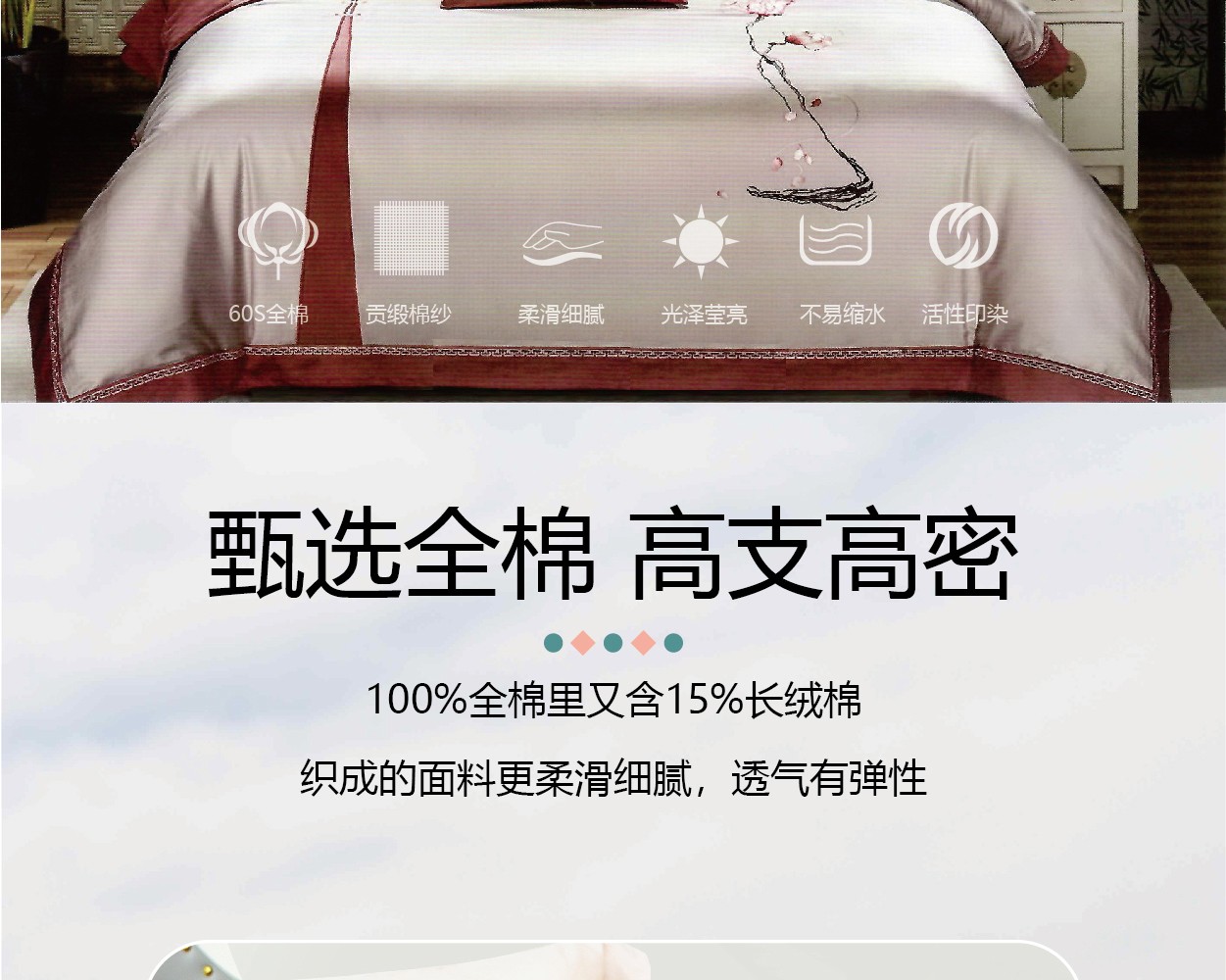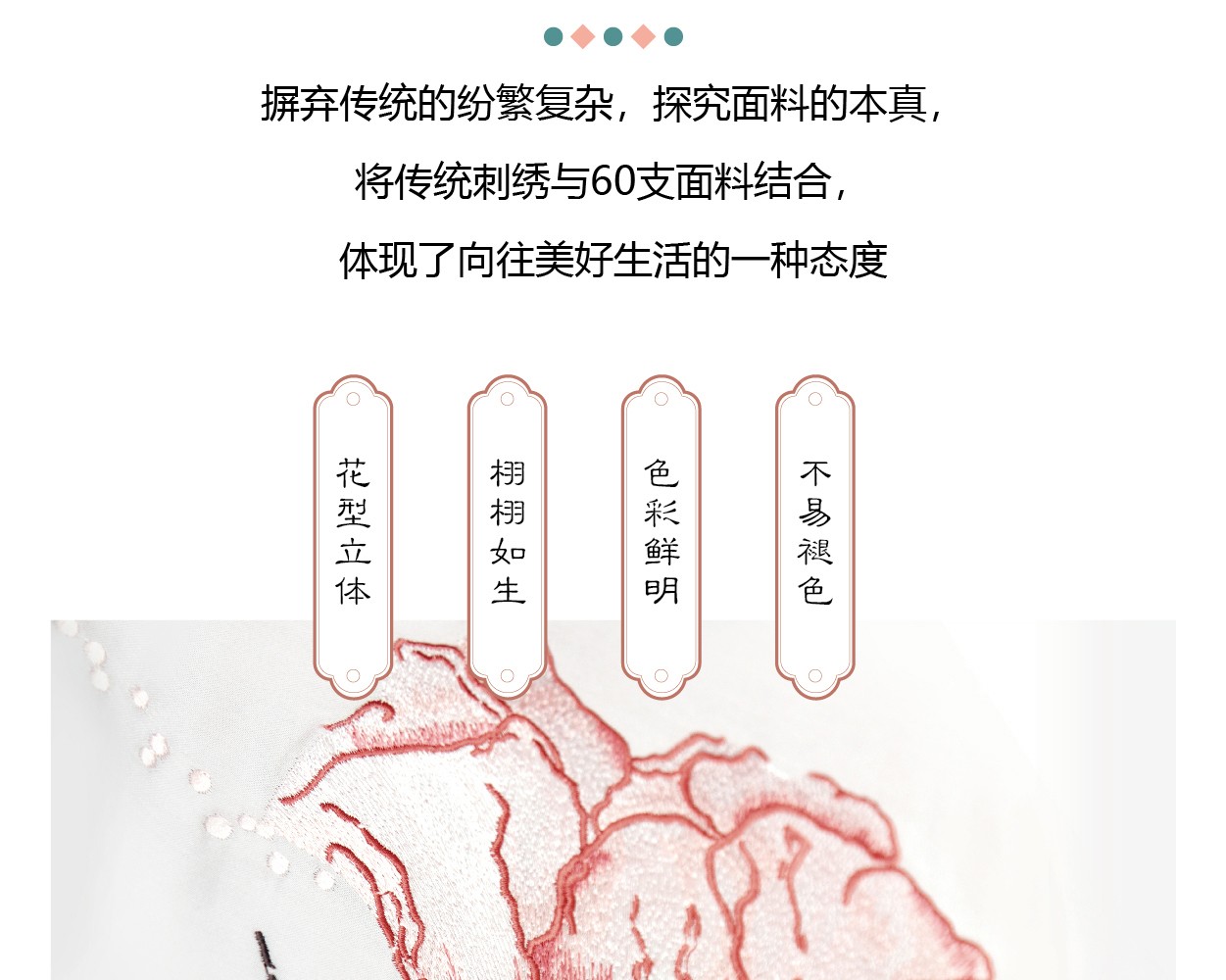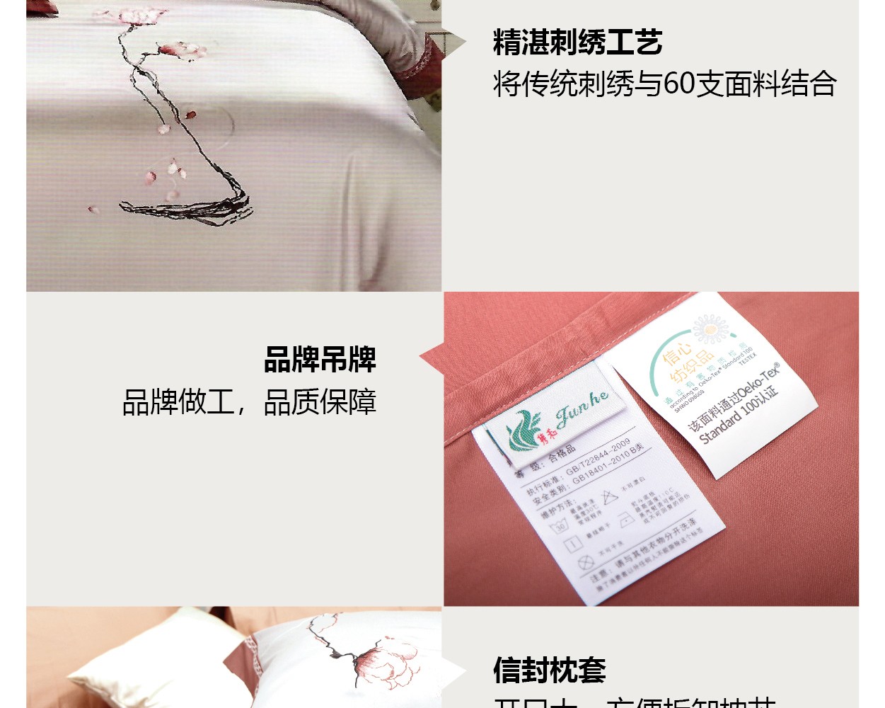 描述:新中式風格,緞紋織造,繡花溫馨高雅,舒適親膚,裸感極致體驗