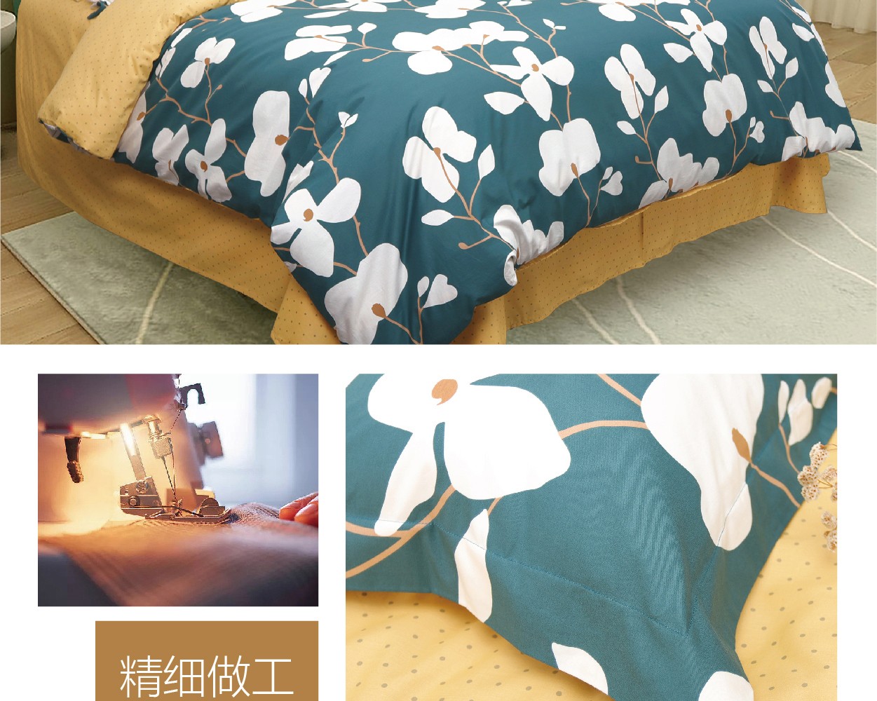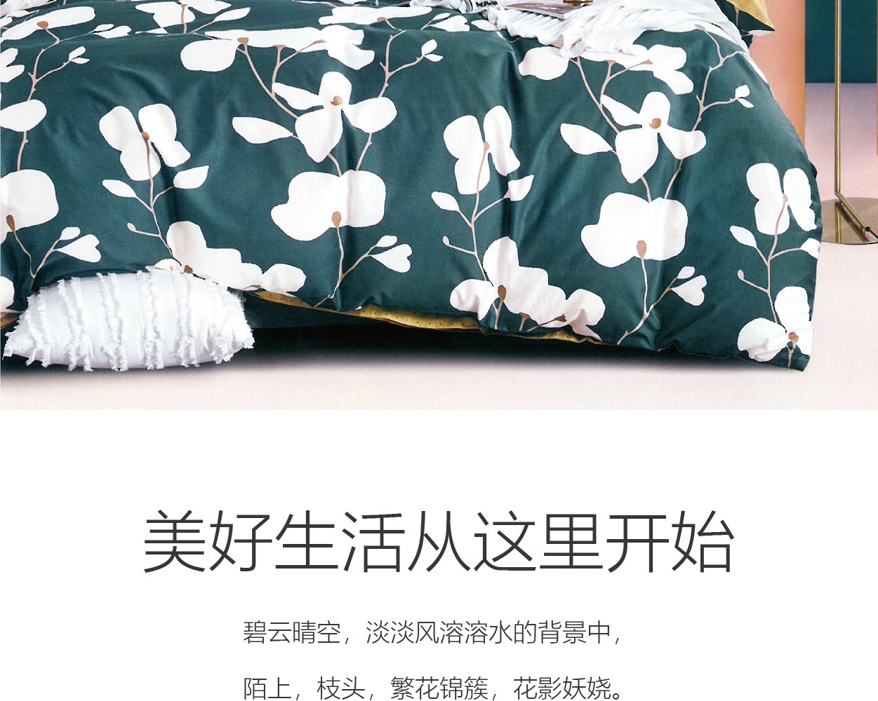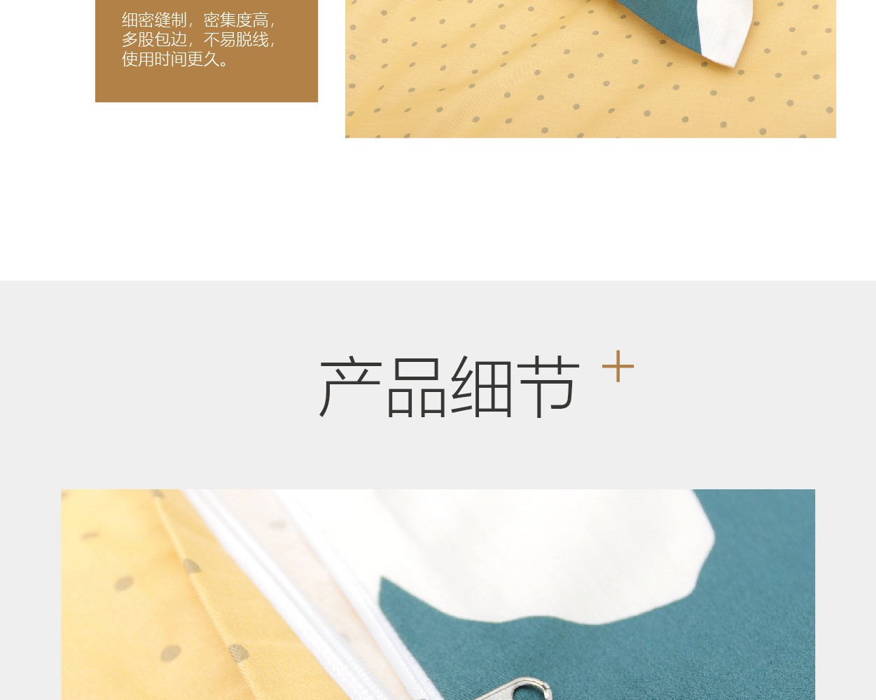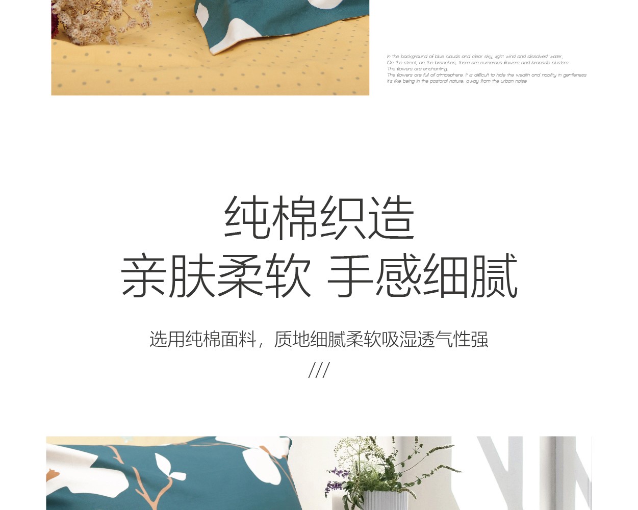 描述:100%純棉面料,優(yōu)質(zhì)環(huán)保印染工藝,無任何甲醛、增白劑、安全環(huán)保健康 全工序純棉精織,柔軟舒適,吸濕透氣,帶給您舒適的睡眠體驗。