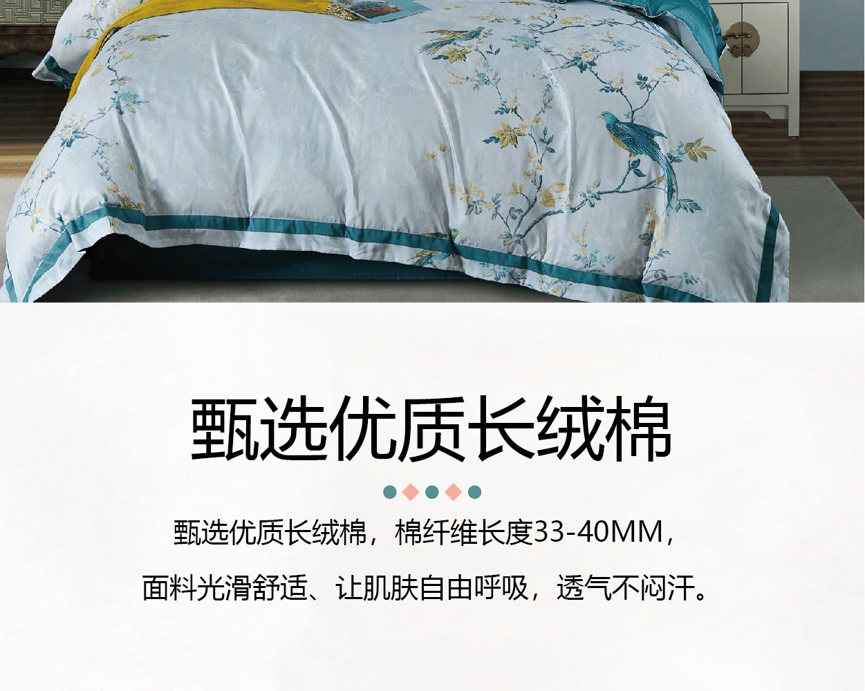 描述:60S天然純棉面料,如軟純粹,細(xì)膩親膚 織造面料的每一根纖維選取長(zhǎng)度均大于30mm,精梳去除粗纖維,無(wú)任何斷線起球。 安全環(huán)保印染工藝,讓你睡得更放心,帶給您舒適的睡眠體驗(yàn)