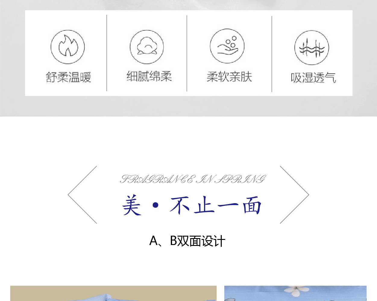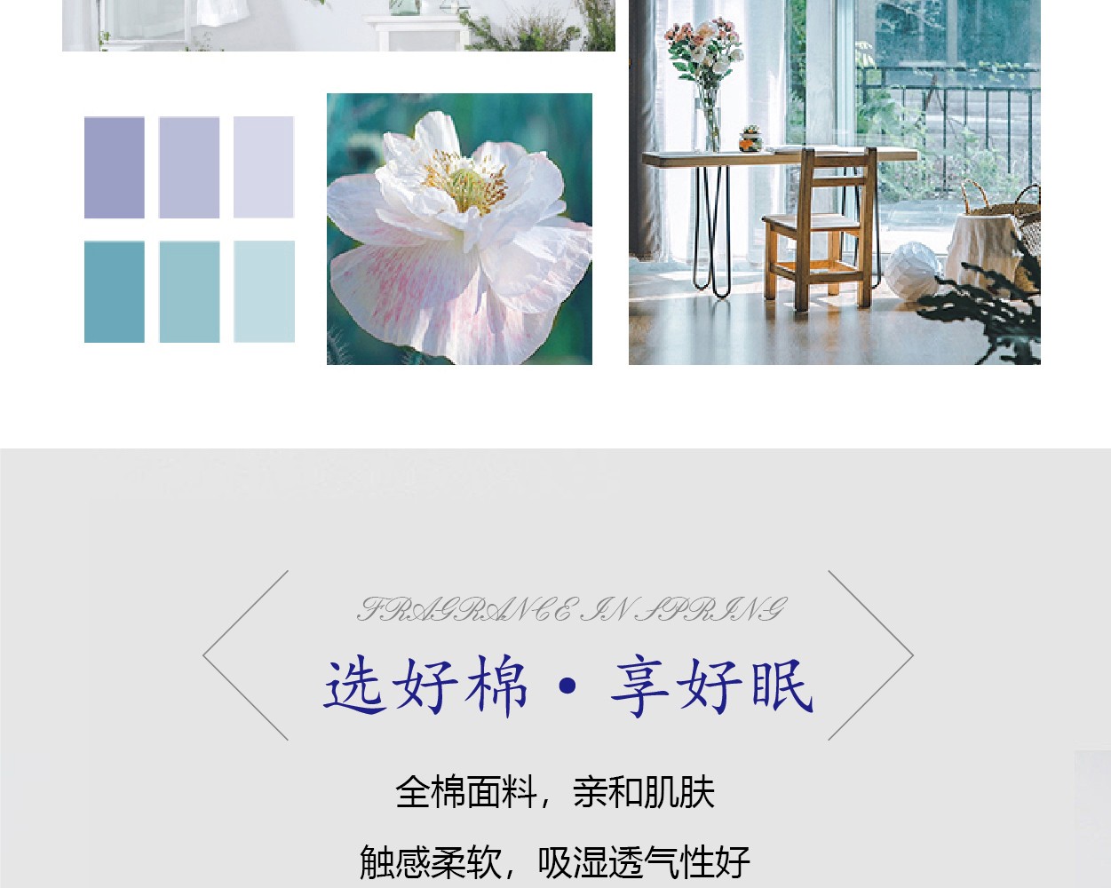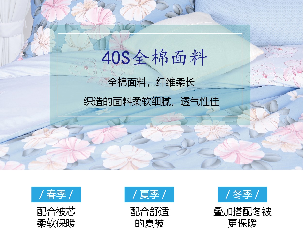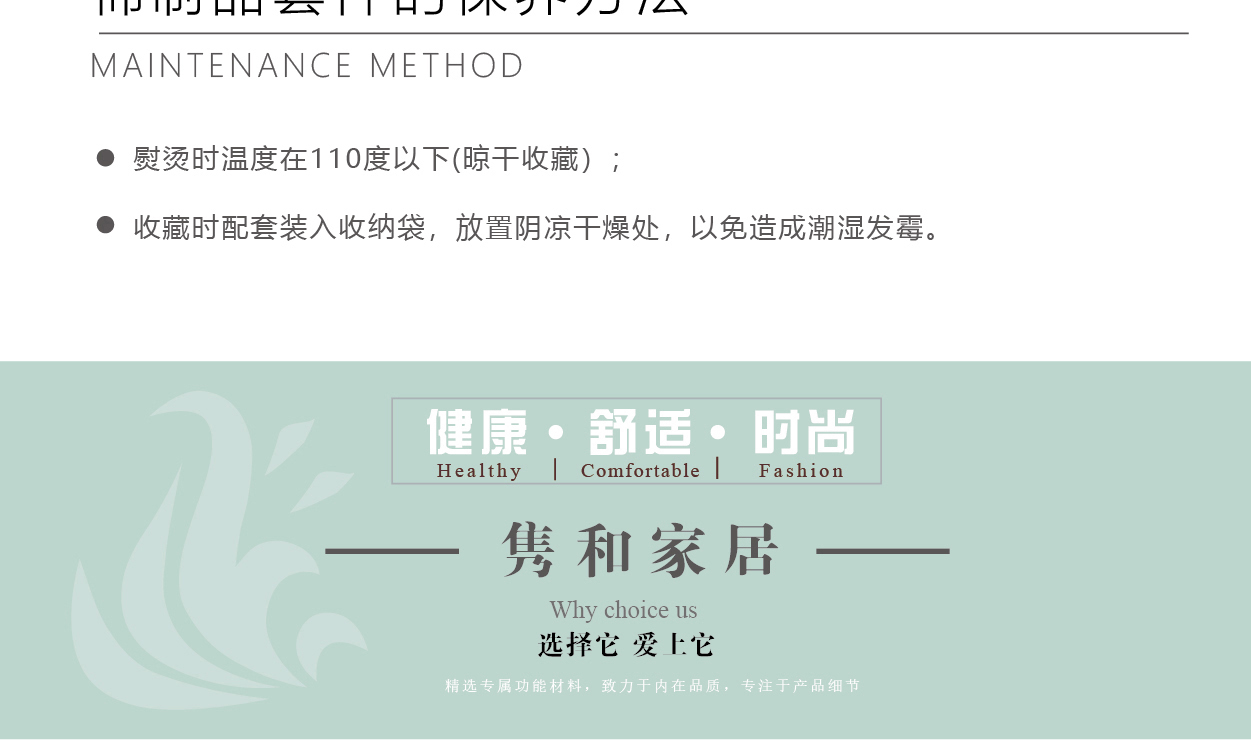 描述:優(yōu)質(zhì)環(huán)保印染工藝,無任何甲醛、增白劑、安全環(huán)保健康 全棉面料,吸濕透氣,滑爽親膚,帶給您舒適的睡眠體驗 織造面料的每-根纖維選取長度均大于30mm,精梳去除粗纖維,無任何斷線起球。
