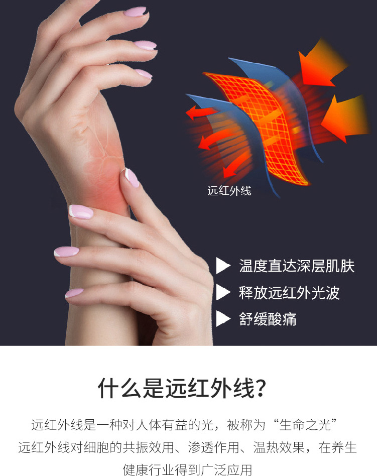 功能:磁療、負(fù)離子、遠(yuǎn)紅外、護(hù)腕