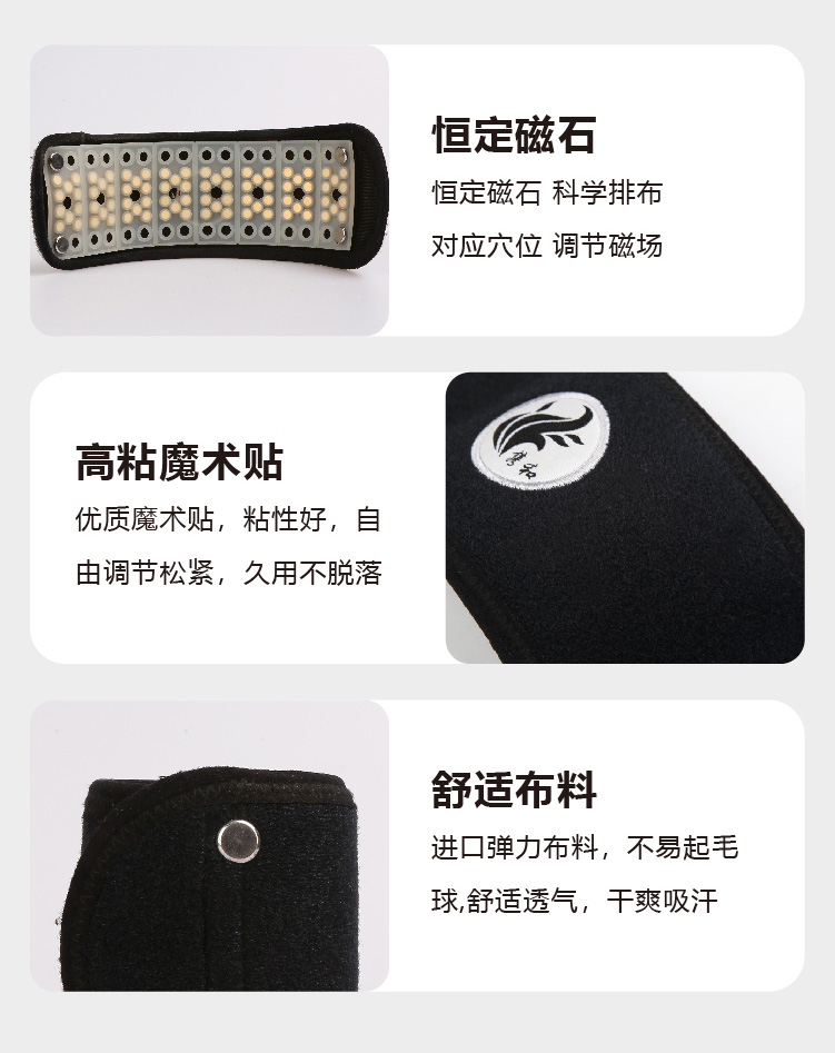 描述:內(nèi)嵌生物磁石,磁場作用于局部穴位,產(chǎn)生類針灸效果,還可用于緩解手腕部關(guān)節(jié)炎,腫脹,麻木等不適。
