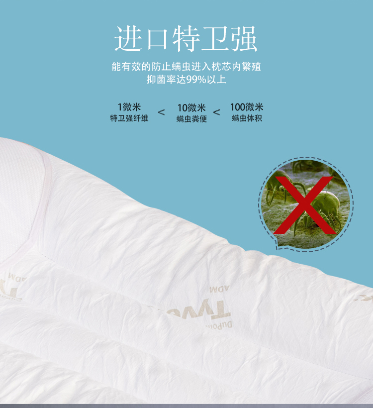 枕芯面料:防螨特衛(wèi)強(qiáng)