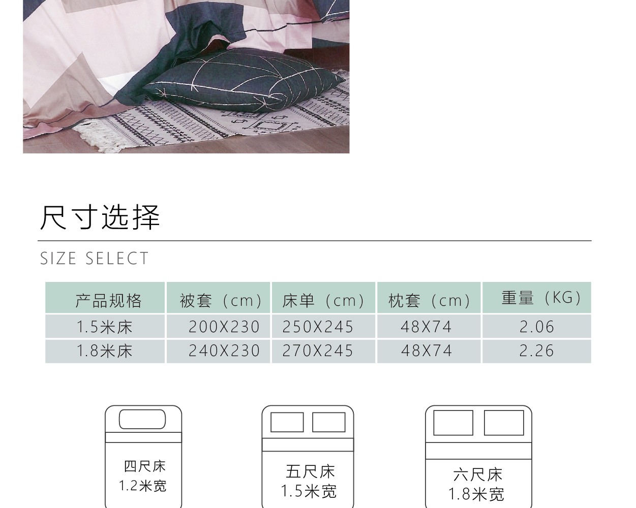 產品規(guī)格:200*230cm(1.5米床),240*220cm(1.8米床)