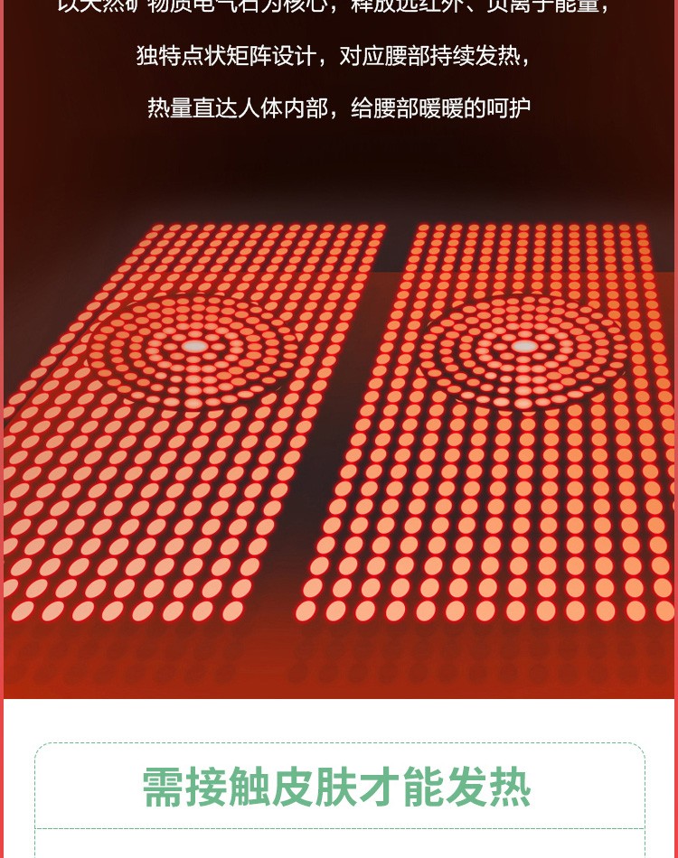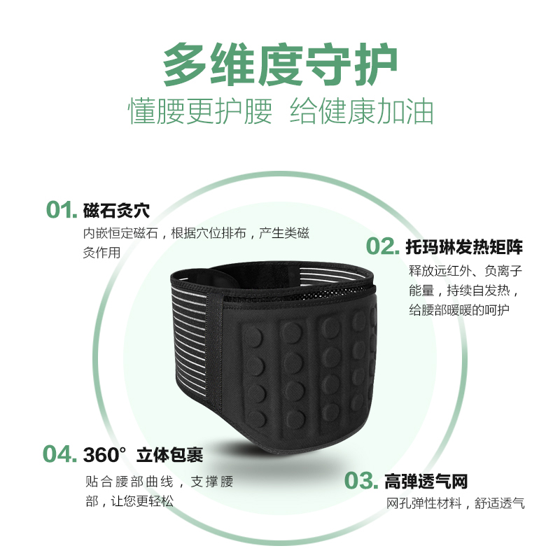 描述:16顆稀土磁石+1顆強(qiáng)太極磁作用于腰部,形成磁場包圍圈,釋放磁能量,獨(dú)特點(diǎn)狀矩陣設(shè)計(jì),對應(yīng)腰部穴位均勻發(fā)熱,熱量直達(dá)人體內(nèi)部,呵護(hù)腰部,不懼寒冷。