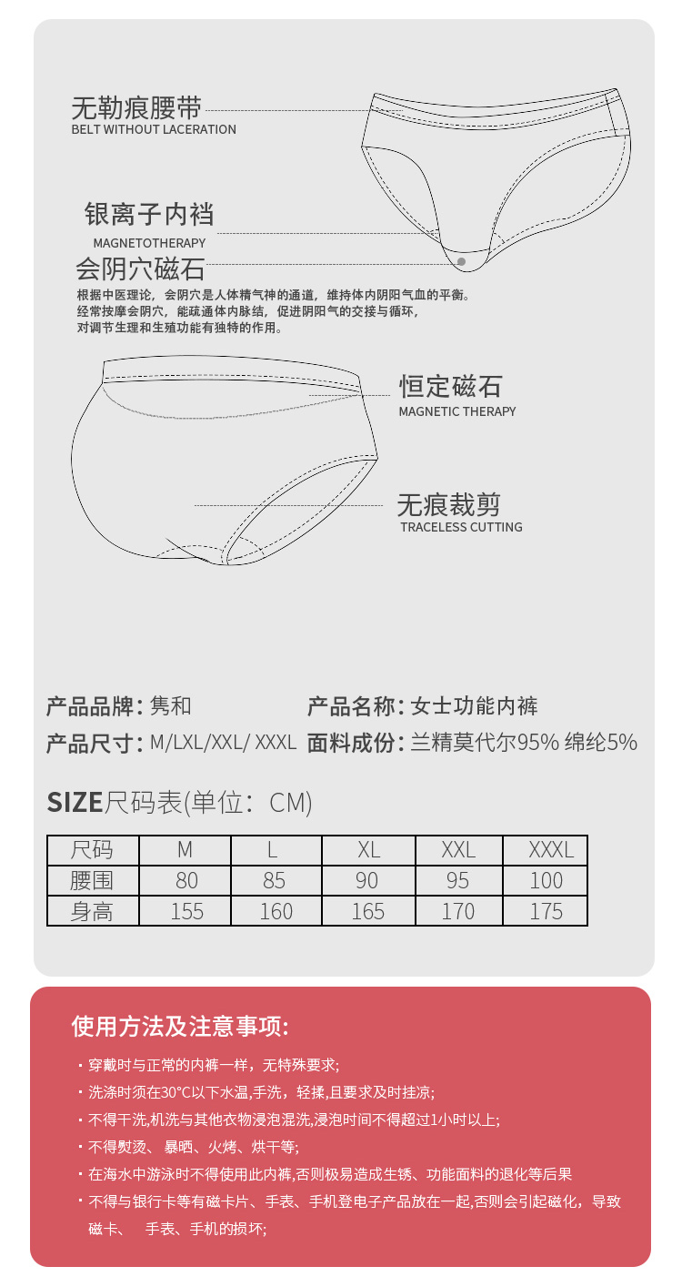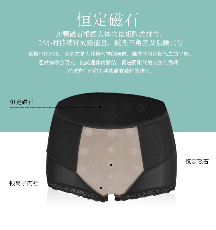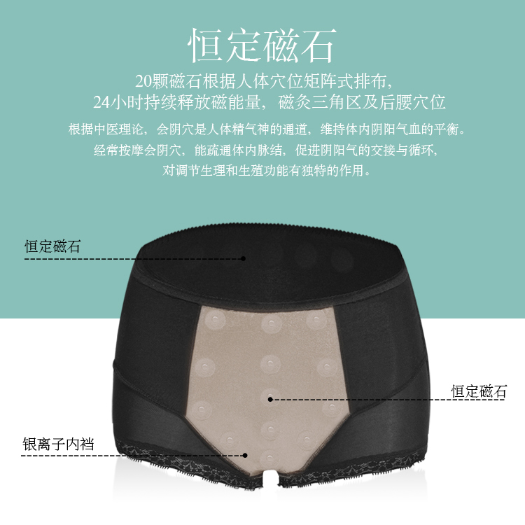 描述:精蘭莫代爾面料.內(nèi)鑲18顆生物磁片,24小時釋放磁能量,更有銀離子抑菌、防輻射、舒適透氣,再也不用擔(dān)心例假的痛苦,呵護(hù)女性每一天