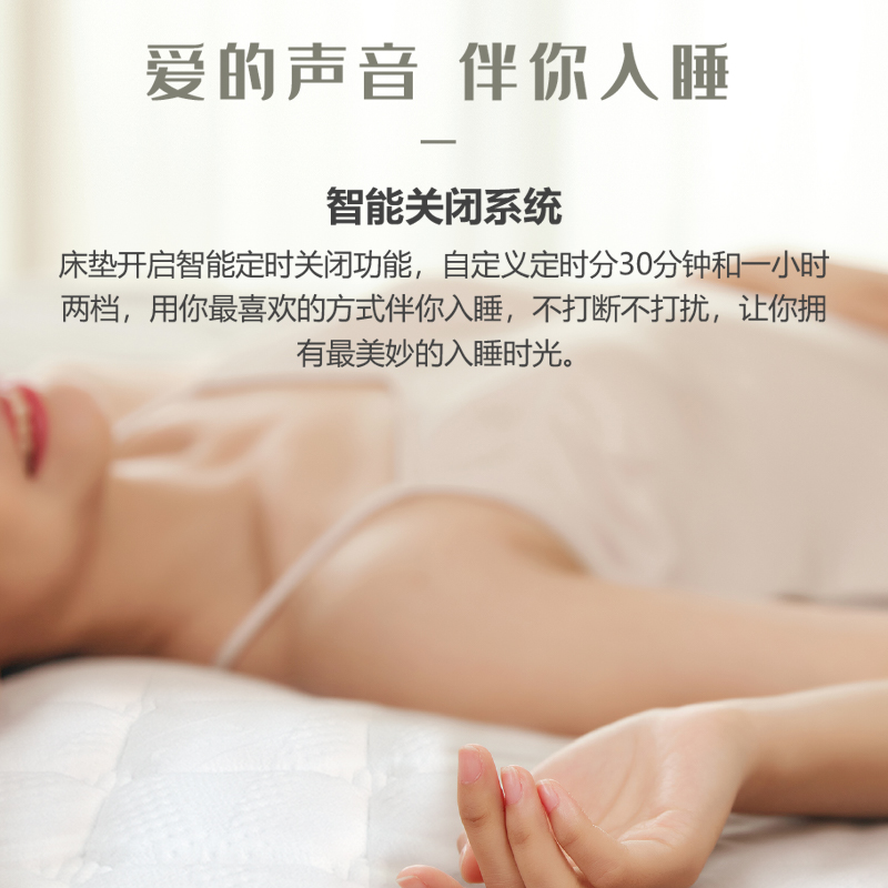 描述:床墊采用天然乳膠、高仿真全景聲音響、高密度回彈棉等15層復(fù)合材料結(jié)構(gòu)、內(nèi)置音樂睡眠系統(tǒng)、靈動樂符索饒耳畔讓身體零距離感受音律帶來的震動按摩體驗,立體環(huán)繞一鍵藍(lán)牙連接、零壓乳膠完美貼合身體曲線、讓你盡情享受好睡眠。